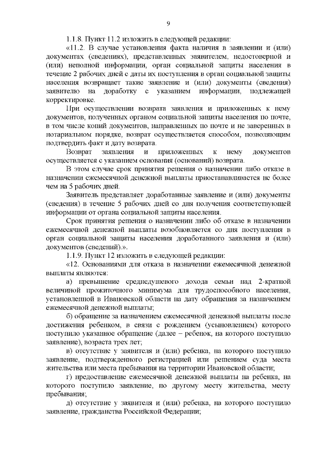 Постановление Правительства Ивановской области от 22.11.2021 N 555-п "О внесении изменений в постановления Правительства Ивановской области от 22.01.2013 N 8-п "Об утверждении Правил обращения за ежемесячной денежной выплатой семьям на третьего и последующих детей, ее назначения, выплаты и организации доставки в Ивановской области, Порядка учета и исчисления величины среднедушевого дохода семьи, дающего право на получение ежемесячной денежной выплаты семьям на третьего и последующих детей, и Порядка предоставления, расходования и учета средств, поступающих из областного бюджета на осуществление ежемесячной денежной выплаты семьям на третьего и последующих детей" и от 19.07.2017 N 275-п "О реализации Закона Ивановской области от 30.05.2017 N 40-ОЗ "О дополнительных мерах государственной поддержки семей с детьми на территории Ивановской области" и внесении изменений в некоторые постановления Правительства Ивановской области"
