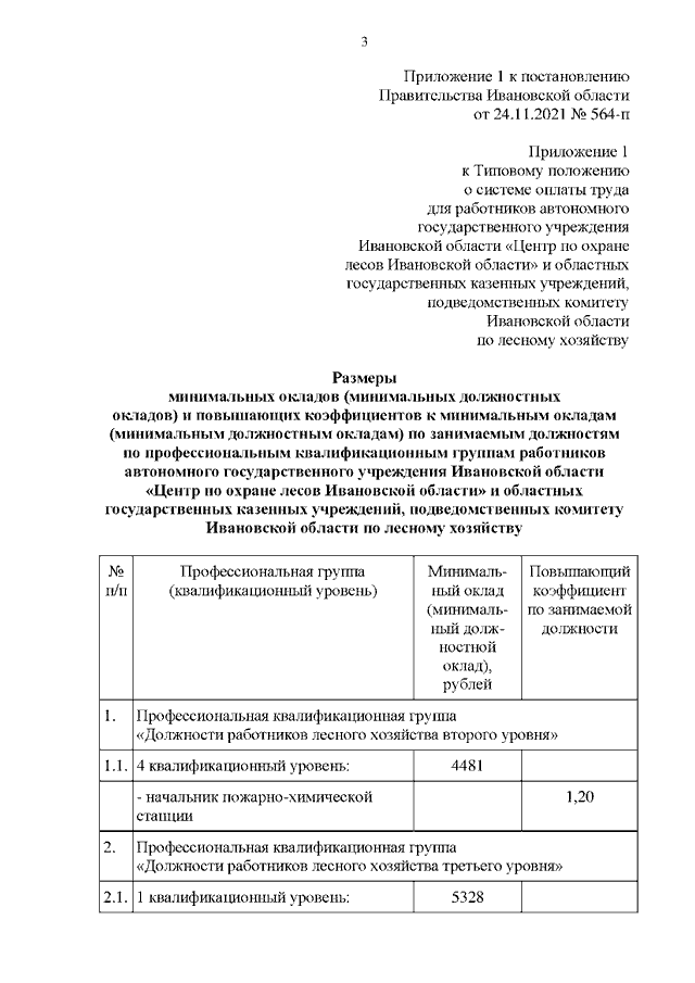 Постановление Правительства Ивановской области от 24.11.2021 N 564-п "О внесении изменений в постановление Правительства Ивановской области от 31.12.2008 N 365-п "О системе оплаты труда работников автономных государственных учреждений Ивановской области и областных государственных казенных учреждений, подведомственных комитету Ивановской области по лесному хозяйству"