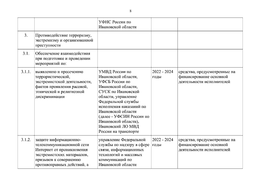 Распоряжение Правительства Ивановской области от 01.12.2021 N 130-рп "Об утверждении плана межведомственных мероприятий по профилактике правонарушений и борьбе с преступностью на территории Ивановской области на 2022 - 2024 годы"