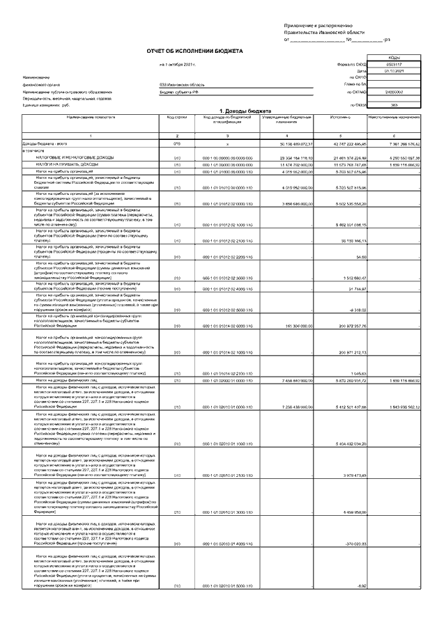 Распоряжение Правительства Ивановской области от 01.12.2021 N 135-рп "Об утверждении отчета об исполнении областного бюджета за 9 месяцев 2021 года"