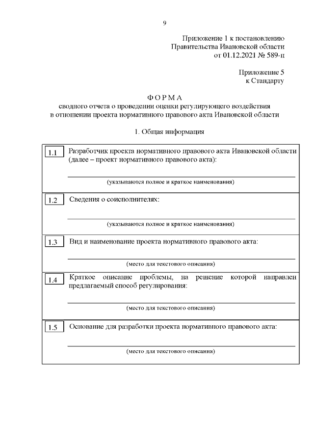 Постановление Правительства Ивановской области от 01.12.2021 N 589-п "О внесении изменений в постановление Правительства Ивановской области от 17.12.2013 N 534-п "Об оценке регулирующего воздействия проектов нормативных правовых актов Ивановской области"