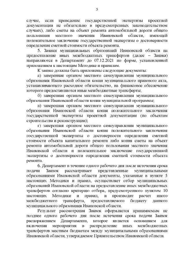 Постановление Правительства Ивановской области от 06.12.2021 N 600-п "О внесении изменений в постановление Правительства Ивановской области от 13.11.2013 N 447-п "Об утверждении государственной программы Ивановской области "Развитие транспортной системы Ивановской области" (вместе с "Методикой распределения и правилами предоставления иных межбюджетных трансфертов бюджетам муниципальных образований Ивановской области на приведение в нормативное состояние, развитие и увеличение пропускной способности сети автомобильных дорог общего пользования местного значения")