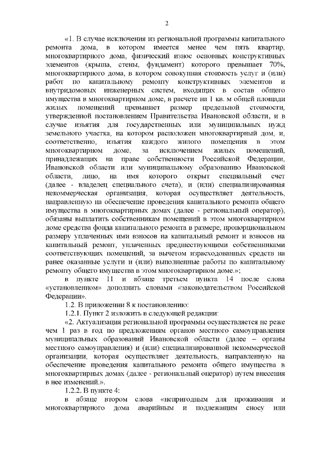 Постановление Правительства Ивановской области от 15.12.2021 N 641-п "О внесении изменений в постановления Правительства Ивановской области от 31.12.2013 N 579-п "Об утверждении порядков, регулирующих отношения в сфере обеспечения проведения капитального ремонта общего имущества в многоквартирных домах, расположенных на территории Ивановской области", от 25.06.2021 N 301-п "Об утверждении Порядка, сроков проведения и источников финансирования реконструкции или сноса многоквартирных домов, исключенных из региональной программы капитального ремонта общего имущества в многоквартирных домах, расположенных на территории Ивановской области, либо иных мероприятий, предусмотренных законодательством Российской Федерации и обеспечивающих жилищные права собственников жилых помещений и нанимателей жилых помещений по договорам социального найма в этих домах"
