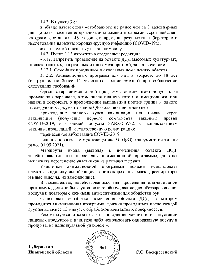 Постановление Правительства Ивановской области от 21.12.2021 N 675-п "О внесении изменений в постановление Правительства Ивановской области от 08.05.2020 N 209-п "Об утверждении регламентов по проведению профилактических мероприятий и дезинфекции в целях недопущения распространения новой коронавирусной инфекции (COVID-2019) на территории Ивановской области"