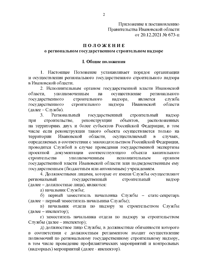 Постановление Правительства Ивановской области от 20.12.2021 N 673-п "Об утверждении Положения о региональном государственном строительном надзоре"