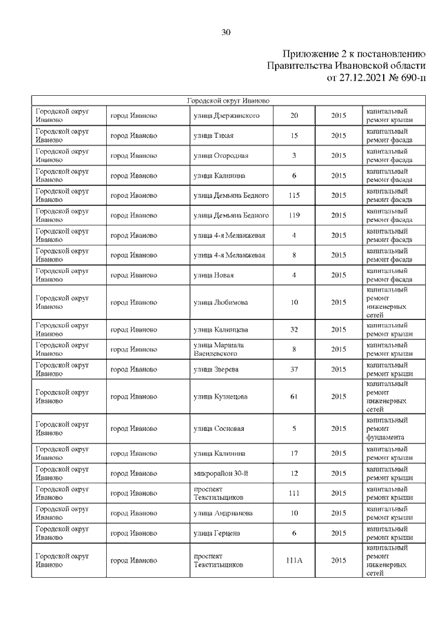 Постановление Правительства Ивановской области от 27.12.2021 N 690-п "О внесении изменений в постановление Правительства Ивановской области от 30.04.2014 N 164-п "Об утверждении региональной программы капитального ремонта общего имущества в многоквартирных домах, расположенных на территории Ивановской области"
