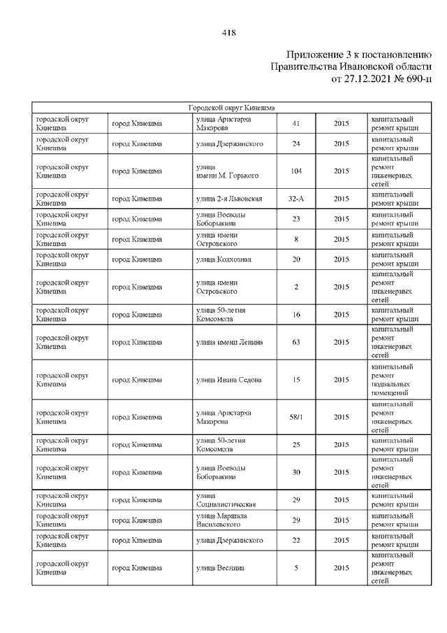 Постановление Правительства Ивановской области от 27.12.2021 N 690-п "О внесении изменений в постановление Правительства Ивановской области от 30.04.2014 N 164-п "Об утверждении региональной программы капитального ремонта общего имущества в многоквартирных домах, расположенных на территории Ивановской области"