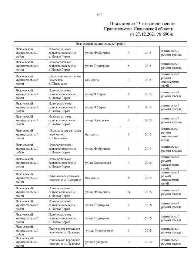 Постановление Правительства Ивановской области от 27.12.2021 N 690-п "О внесении изменений в постановление Правительства Ивановской области от 30.04.2014 N 164-п "Об утверждении региональной программы капитального ремонта общего имущества в многоквартирных домах, расположенных на территории Ивановской области"