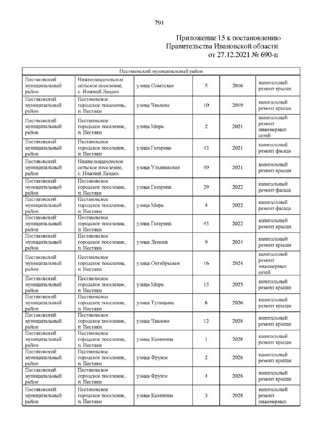 Постановление Правительства Ивановской области от 27.12.2021 N 690-п "О внесении изменений в постановление Правительства Ивановской области от 30.04.2014 N 164-п "Об утверждении региональной программы капитального ремонта общего имущества в многоквартирных домах, расположенных на территории Ивановской области"