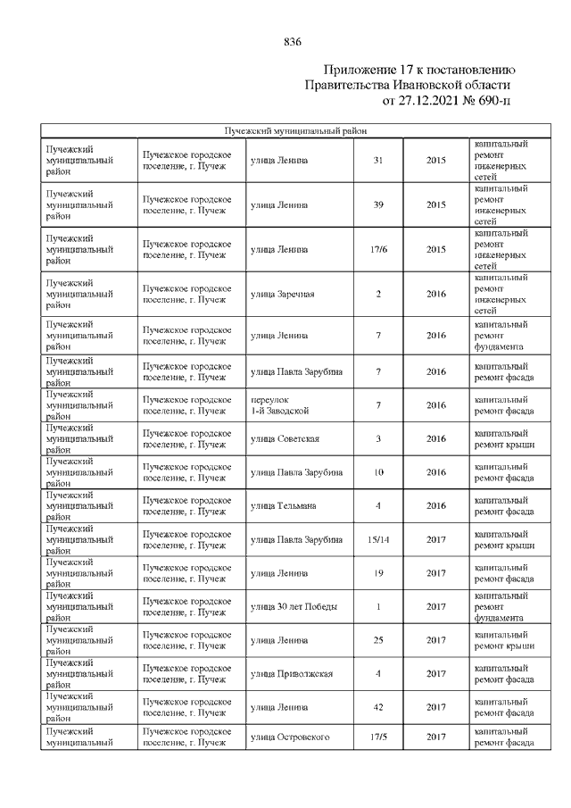 Постановление Правительства Ивановской области от 27.12.2021 N 690-п "О внесении изменений в постановление Правительства Ивановской области от 30.04.2014 N 164-п "Об утверждении региональной программы капитального ремонта общего имущества в многоквартирных домах, расположенных на территории Ивановской области"