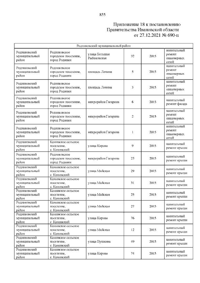Постановление Правительства Ивановской области от 27.12.2021 N 690-п "О внесении изменений в постановление Правительства Ивановской области от 30.04.2014 N 164-п "Об утверждении региональной программы капитального ремонта общего имущества в многоквартирных домах, расположенных на территории Ивановской области"