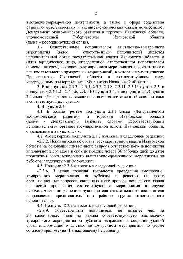 Постановление Правительства Ивановской области от 28.12.2021 N 706-п "О внесении изменений в постановление Правительства Ивановской области от 23.11.2012 N 490-п "Об утверждении Регламента организации подготовки и проведения мероприятий в сфере международных и внешнеэкономических связей Правительства Ивановской области и исполнительных органов государственной власти Ивановской области, а также выставочно-ярмарочных мероприятий в субъектах Российской Федерации и за рубежом"