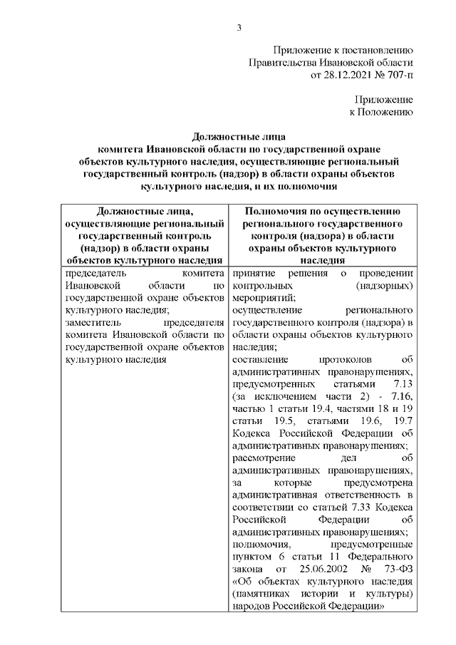 Постановление Правительства Ивановской области от 28.12.2021 N 707-п "О внесении изменений в постановление Правительства Ивановской области от 24.12.2015 N 594-п "Об утверждении Положения о комитете Ивановской области по государственной охране объектов культурного наследия"