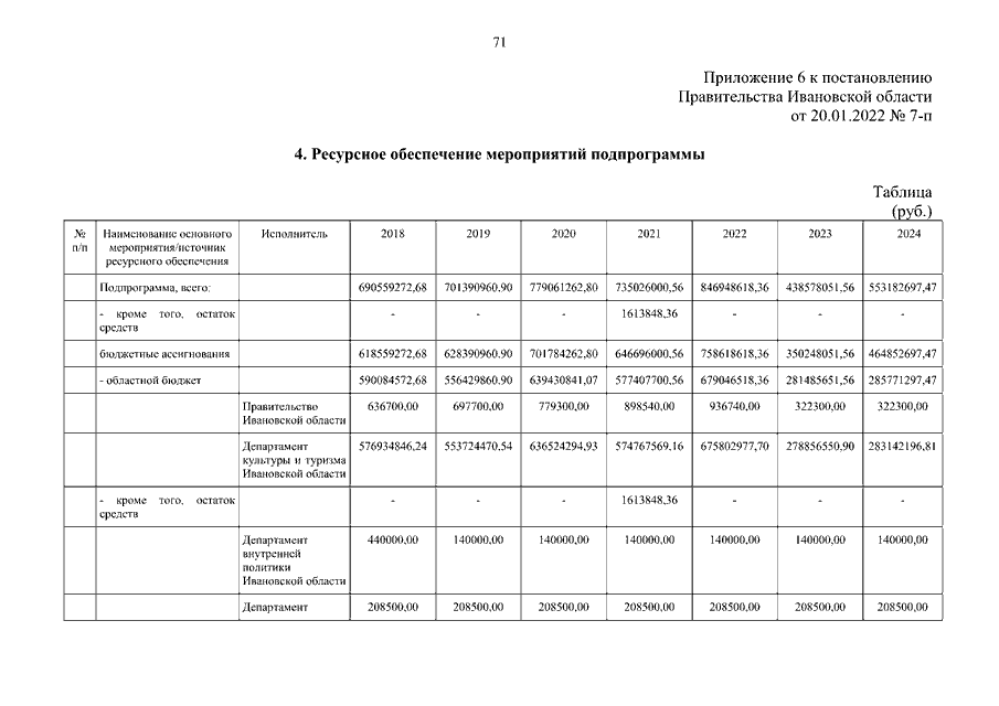 Постановление Правительства Ивановской области от 20.01.2022 N 7-п "О внесении изменений в постановление Правительства Ивановской области от 06.12.2017 N 455-п "Об утверждении государственной программы Ивановской области "Развитие культуры и туризма в Ивановской области" (вместе с "Порядком предоставления и распределения субсидий бюджетам муниципальных образований Ивановской области на реализацию мероприятий по модернизации библиотек в части комплектования книжных фондов библиотек муниципальных образований", "Порядком предоставления и распределения субсидий бюджетам муниципальных образований на техническое оснащение муниципальных музеев", "Порядком предоставления и распределения субсидий бюджетам муниципальных образований Ивановской области на создание и модернизацию учреждений культурно-досугового типа в сельской местности", "Порядком предоставления и распределения субсидий бюджетам муниципальных образований Ивановской области на создание центров культурного развития в городах с числом жителей до 300 тысяч человек")