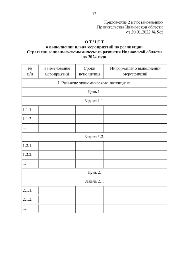 Постановление Правительства Ивановской области от 20.01.2022 N 5-п "Об утверждении плана мероприятий по реализации Стратегии социально-экономического развития Ивановской области до 2024 года"