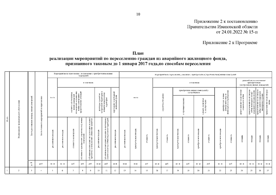 Постановление Правительства Ивановской области от 24.01.2022 N 15-п "О внесении изменений в постановление Правительства Ивановской области от 09.04.2019 N 131-п "Об утверждении региональной адресной программы "Переселение граждан из аварийного жилищного фонда на территории Ивановской области на 2019 - 2023 годы" (вместе с "Перечнем многоквартирных домов, признанных аварийными до 1 января 2017 года", "Планом реализации мероприятий по переселению граждан из аварийного жилищного фонда, признанного таковым до 1 января 2017 года, по способам переселения", "Планом мероприятий по переселению граждан из аварийного жилищного фонда, признанного таковым до 1 января 2017 года")