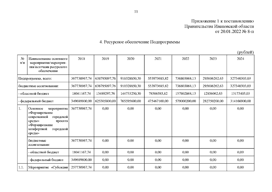 Постановление Правительства Ивановской области от 20.01.2022 N 8-п "О внесении изменений в постановление Правительства Ивановской области от 01.09.2017 N 337-п "Об утверждении государственной программы Ивановской области "Формирование современной городской среды"