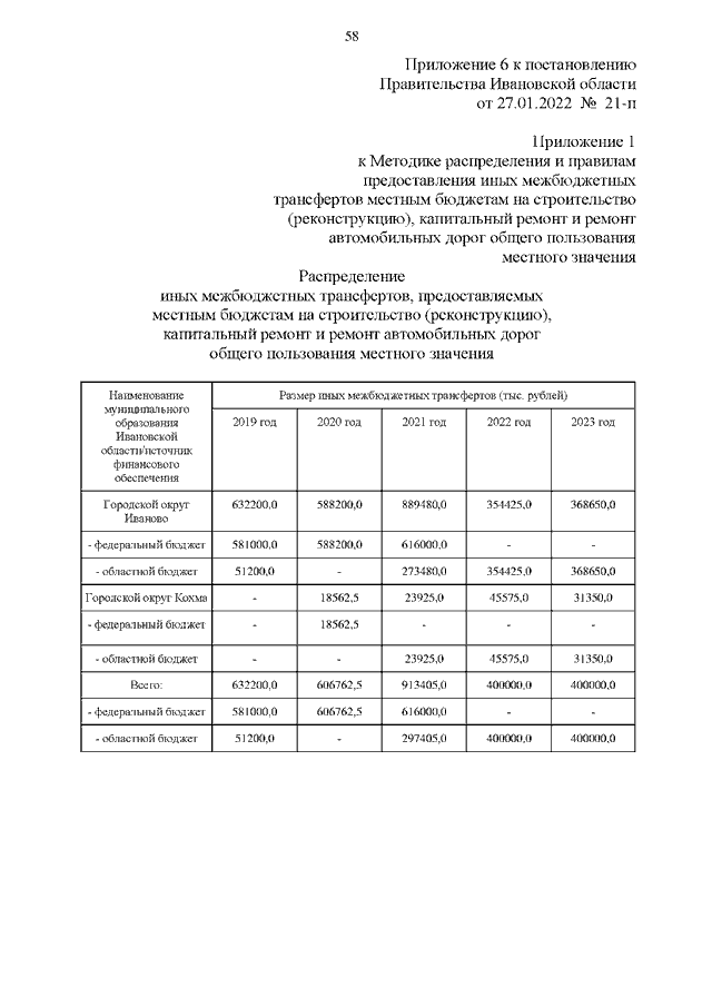 Постановление Правительства Ивановской области от 27.01.2022 N 21-п "О внесении изменений в постановление Правительства Ивановской области от 13.11.2013 N 447-п "Об утверждении государственной программы Ивановской области "Развитие транспортной системы Ивановской области" (вместе с "Методикой распределения и правилами предоставления иных межбюджетных трансфертов бюджетам муниципальных образований Ивановской области на строительство и реконструкцию автомобильных дорог общего пользования местного значения")