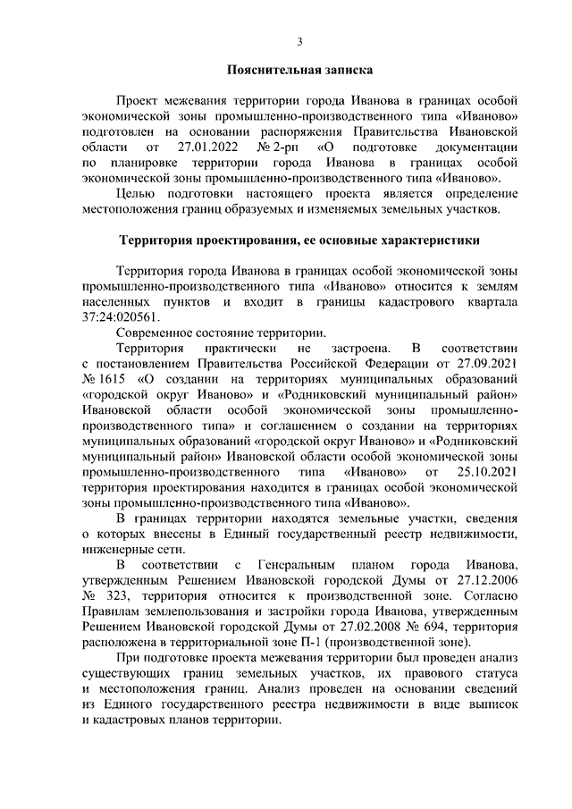 Распоряжение Правительства Ивановской области от 22.02.2022 N 14-рп "Об утверждении проекта межевания территории города Иванова в границах особой экономической зоны промышленно-производственного типа "Иваново"