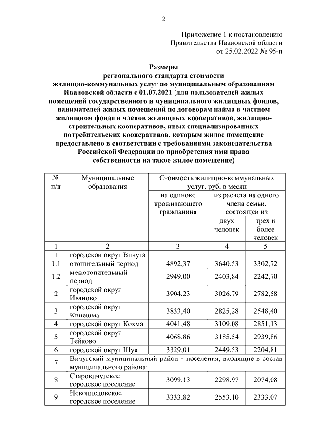 Постановление Правительства Ивановской области от 25.02.2022 N 95-п "Об установлении размеров региональных стандартов стоимости жилищно-коммунальных услуг"