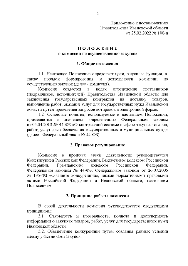 Постановление Правительства Ивановской области от 25.02.2022 N 100-п "О комиссии по осуществлению закупок" (вместе с "Положением о комиссии по осуществлению закупок")