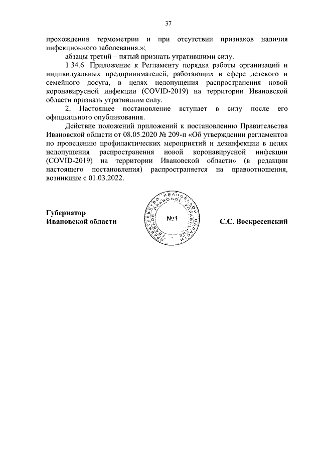 Постановление Правительства Ивановской области от 03.03.2022 N 109-п "О внесении изменений в постановление Правительства Ивановской области от 08.05.2020 N 209-п "Об утверждении регламентов по проведению профилактических мероприятий и дезинфекции в целях недопущения распространения новой коронавирусной инфекции (COVID-2019) на территории Ивановской области"