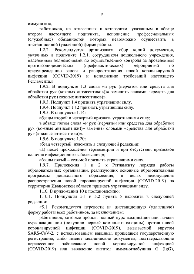 Постановление Правительства Ивановской области от 03.03.2022 N 109-п "О внесении изменений в постановление Правительства Ивановской области от 08.05.2020 N 209-п "Об утверждении регламентов по проведению профилактических мероприятий и дезинфекции в целях недопущения распространения новой коронавирусной инфекции (COVID-2019) на территории Ивановской области"