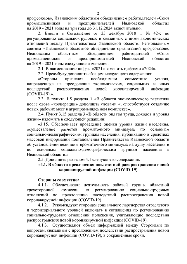 "Дополнительное соглашение к Соглашению от 25.12.2018 N 42-с по регулированию социально-трудовых и связанных с ними экономических отношений между Правительством Ивановской области, Региональным союзом "Ивановское областное объединение организаций профсоюзов", Ивановским областным объединением работодателей "Союз промышленников и предпринимателей Ивановской области" на 2019 - 2021 годы"
