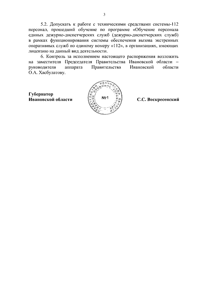 Распоряжение Правительства Ивановской области от 14.04.2022 N 46-рп "О мерах по обеспечению эксплуатации и развития сегментов системы обеспечения вызова экстренных оперативных служб Ивановской области по единому номеру "112"