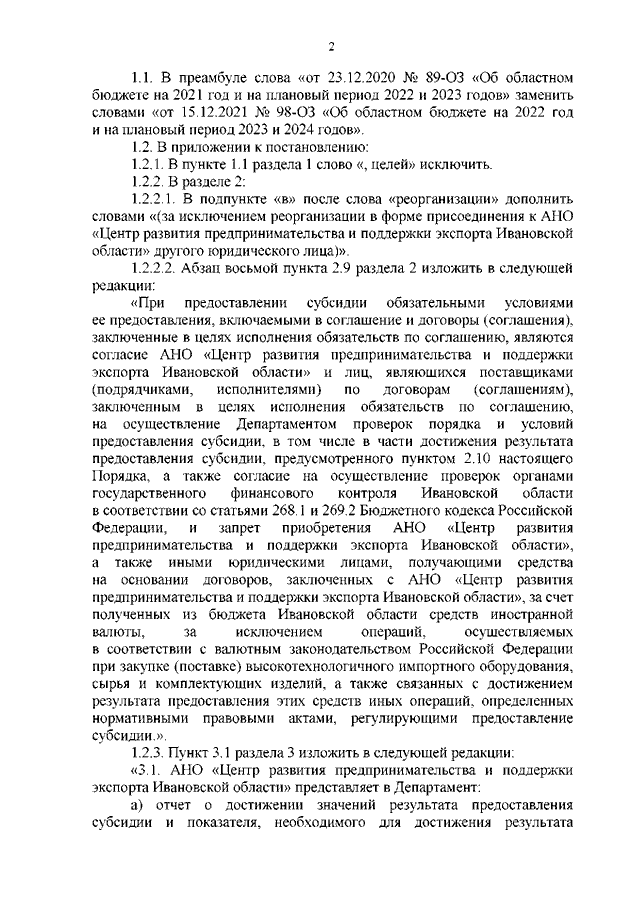 Постановление Правительства Ивановской области от 26.05.2022 N 256-п "О внесении изменений в постановление Правительства Ивановской области от 01.04.2021 N 155-п "Об утверждении Порядка определения объема и предоставления субсидии автономной некоммерческой организации "Центр развития предпринимательства и поддержки экспорта Ивановской области" на финансовое обеспечение затрат, связанных с участием в выставочно-ярмарочных мероприятиях в сфере агропромышленного комплекса"