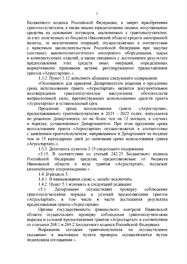 Постановление Правительства Ивановской области от 26.05.2022 N 255-п "О внесении изменений в постановление Правительства Ивановской области от 17.03.2021 N 119-п "Об утверждении Порядка предоставления грантов "Агростартап" крестьянским (фермерским) хозяйствам или индивидуальным предпринимателям, основным видом деятельности которых является производство и (или) переработка сельскохозяйственной продукции, на реализацию проектов создания и (или) развития хозяйства"