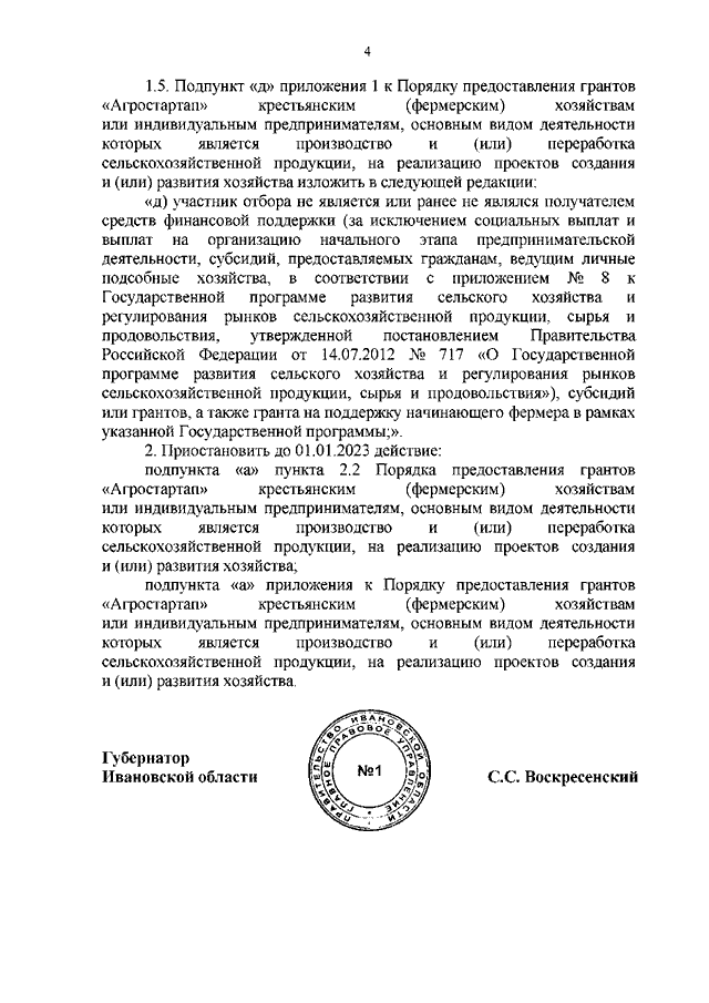 Постановление Правительства Ивановской области от 26.05.2022 N 255-п "О внесении изменений в постановление Правительства Ивановской области от 17.03.2021 N 119-п "Об утверждении Порядка предоставления грантов "Агростартап" крестьянским (фермерским) хозяйствам или индивидуальным предпринимателям, основным видом деятельности которых является производство и (или) переработка сельскохозяйственной продукции, на реализацию проектов создания и (или) развития хозяйства"