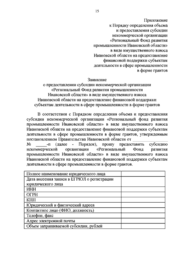 Постановление Правительства Ивановской области от 06.06.2022 N 261-п "Об утверждении Порядка определения объема и предоставления субсидии некоммерческой организации "Региональный Фонд развития промышленности Ивановской области" в виде имущественного взноса Ивановской области на предоставление финансовой поддержки субъектам деятельности в сфере промышленности в форме грантов"