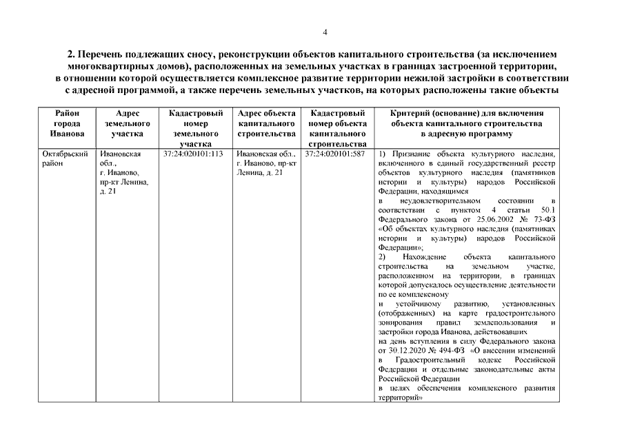 Постановление Правительства Ивановской области от 14.06.2022 N 264-п "Об утверждении адресной программы сноса, реконструкции объектов капитального строительства (за исключением многоквартирных домов), расположенных на земельных участках в границах застроенной территории, в отношении которой осуществляется комплексное развитие территории нежилой застройки"