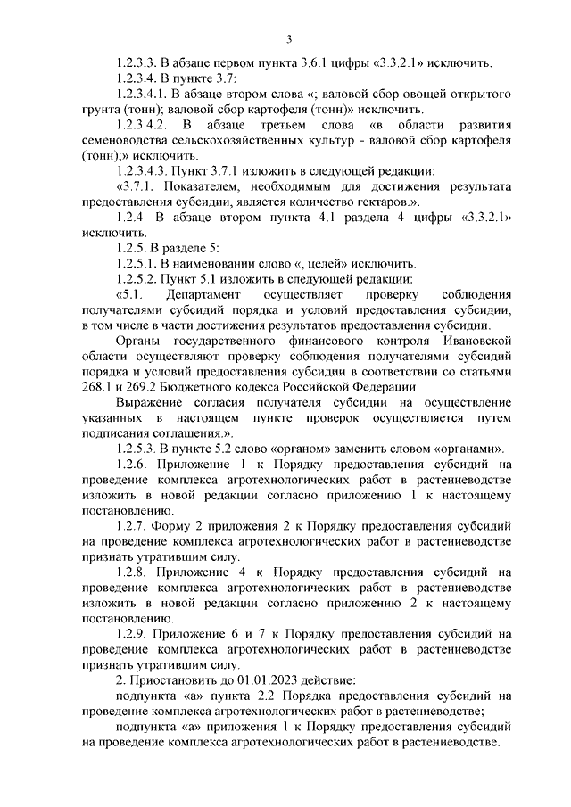 Постановление Правительства Ивановской области от 01.07.2022 N 325-п "О внесении изменений в постановление Правительства Ивановской области от 20.03.2013 N 106-п "Об утверждении Порядка предоставления субсидий на проведение комплекса агротехнологических работ в растениеводстве"