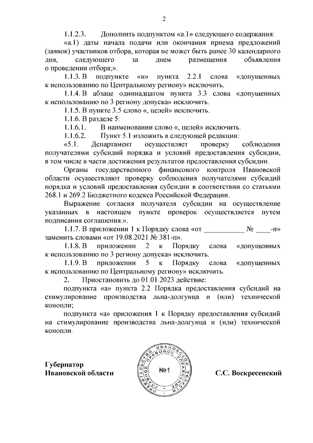 Постановление Правительства Ивановской области от 01.07.2022 N 319-п "О внесении изменений в постановление Правительства Ивановской области от 19.08.2021 N 381-п "Об утверждении Порядка предоставления субсидий на стимулирование производства льна-долгунца и (или) технической конопли"