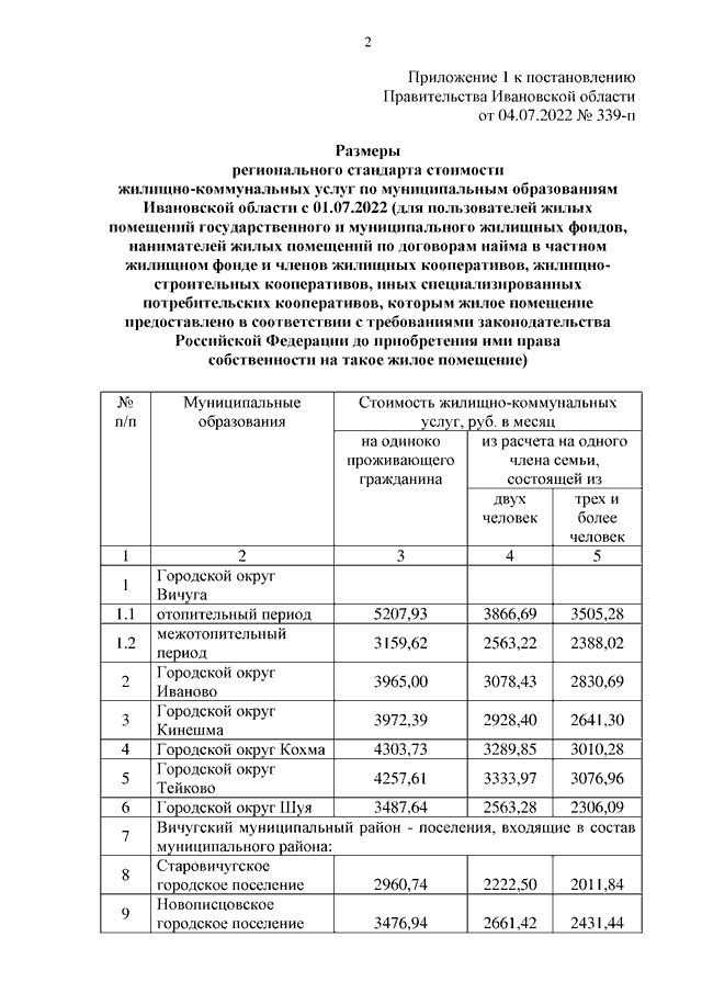 Постановление Правительства Ивановской области от 04.07.2022 N 339-п "Об установлении размеров региональных стандартов стоимости жилищно-коммунальных услуг"