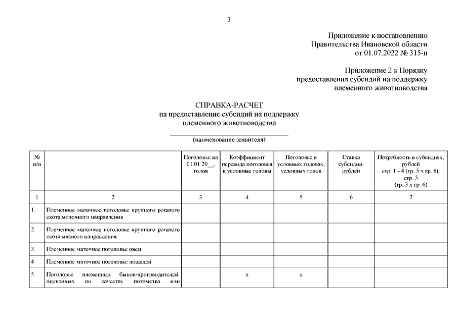 Постановление Правительства Ивановской области от 01.07.2022 N 315-п "О внесении изменений в постановление Правительства Ивановской области от 08.02.2017 N 32-п "Об утверждении Порядка предоставления субсидий на поддержку племенного животноводства"