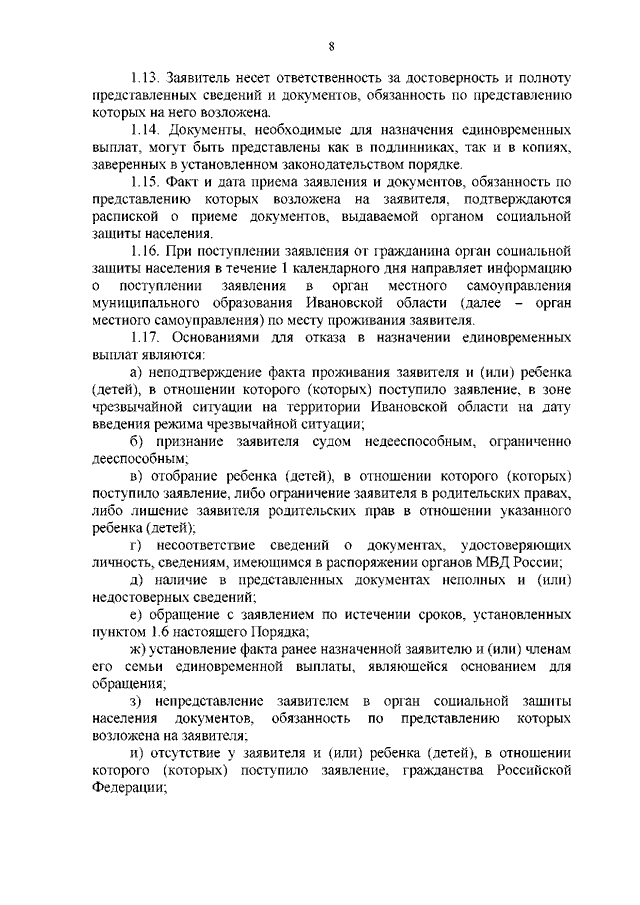 Постановление Правительства Ивановской области от 29.06.2022 N 300-п "Об утверждении Порядка предоставления единовременных денежных выплат гражданам в случаях возникновения чрезвычайных ситуаций природного и техногенного характера на территории Ивановской области и о внесении изменений в постановления Правительства Ивановской области от 27.06.2008 N 170-п "Об утверждении Перечня государственных услуг (работ), предоставляемых (выполняемых) исполнительными органами государственной власти Ивановской области и подведомственными им учреждениями" и от 17.10.2012 N 403-п "Об утверждении Положения о Департаменте социальной защиты населения Ивановской области"