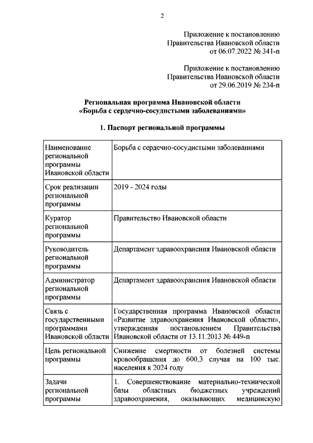 Постановление Правительства Ивановской области от 06.07.2022 N 341-п "О внесении изменения в постановление Правительства Ивановской области от 29.06.2019 N 234-п "Об утверждении региональной программы Ивановской области "Борьба с сердечно-сосудистыми заболеваниями"