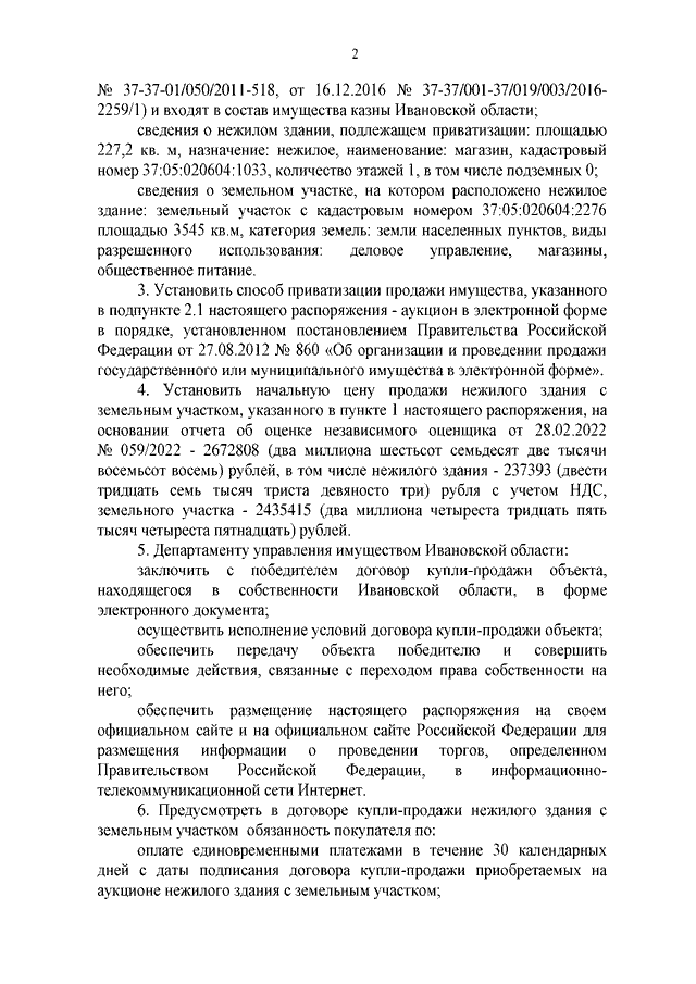Распоряжение Правительства Ивановской области от 06.07.2022 N 76-рп "Об условиях приватизации нежилого здания с земельным участком по адресу: Ивановская область, Ивановский район, с. Богородское, ул. Б. Клинцевская, д. 4А, находящихся в собственности Ивановской области"
