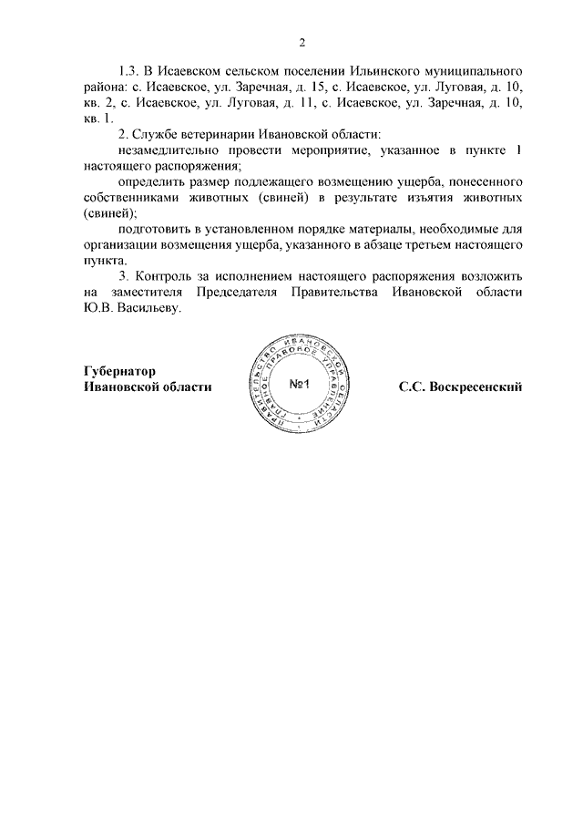 Распоряжение Правительства Ивановской области от 12.07.2022 N 77-рп "Об организации и проведении изъятия животных на территории Ивановской области при ликвидации очага африканской чумы свиней"