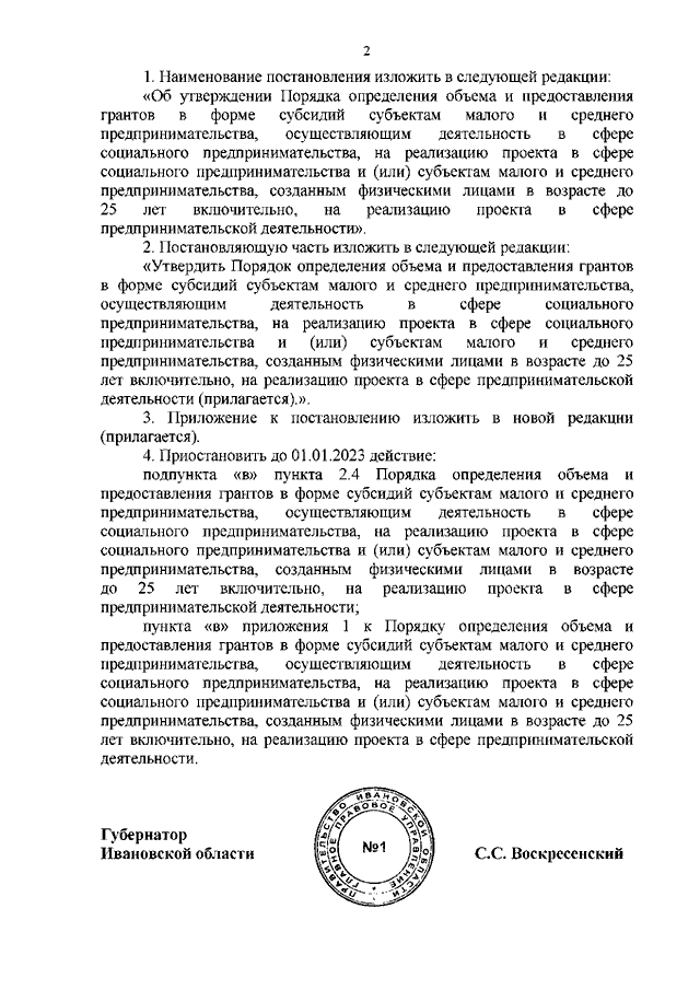 Постановление Правительства Ивановской области от 12.07.2022 N 347-п "О внесении изменений в постановление Правительства Ивановской области от 08.07.2021 N 311-п "Об утверждении Порядка определения объема и предоставления грантов в форме субсидий субъектам малого и среднего предпринимательства, осуществляющим деятельность в сфере социального предпринимательства, на финансовое обеспечение затрат на развитие бизнеса" (вместе с "Порядком определения объема и предоставления грантов в форме субсидий субъектам малого и среднего предпринимательства, осуществляющим деятельность в сфере социального предпринимательства, на реализацию проекта в сфере социального предпринимательства и (или) субъектам малого и среднего предпринимательства, созданным физическими лицами в возрасте до 25 лет включительно, на реализацию проекта в сфере предпринимательской деятельности")