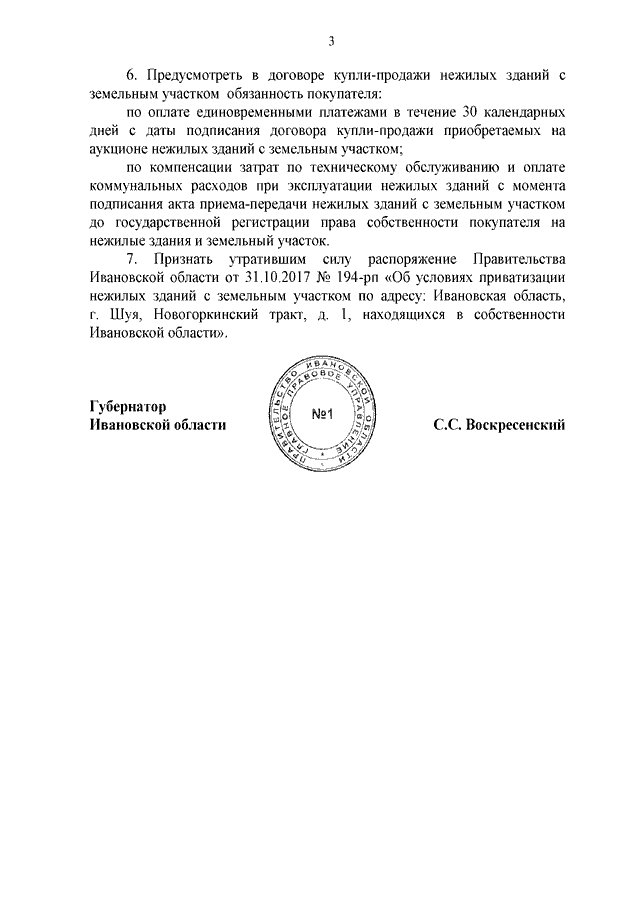 Распоряжение Правительства Ивановской области от 18.08.2022 N 99-рп "Об условиях приватизации нежилых зданий с земельным участком по адресу: Ивановская область, г. Шуя, Новогоркинский тракт, дом 1, находящихся в собственности Ивановской области"