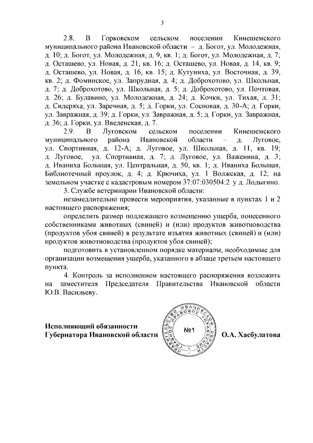 Распоряжение Правительства Ивановской области от 20.09.2022 N 111-рп "Об организации и проведении изъятия животных и (или) продуктов животноводства на территории Ивановской области при ликвидации очага африканской чумы свиней"