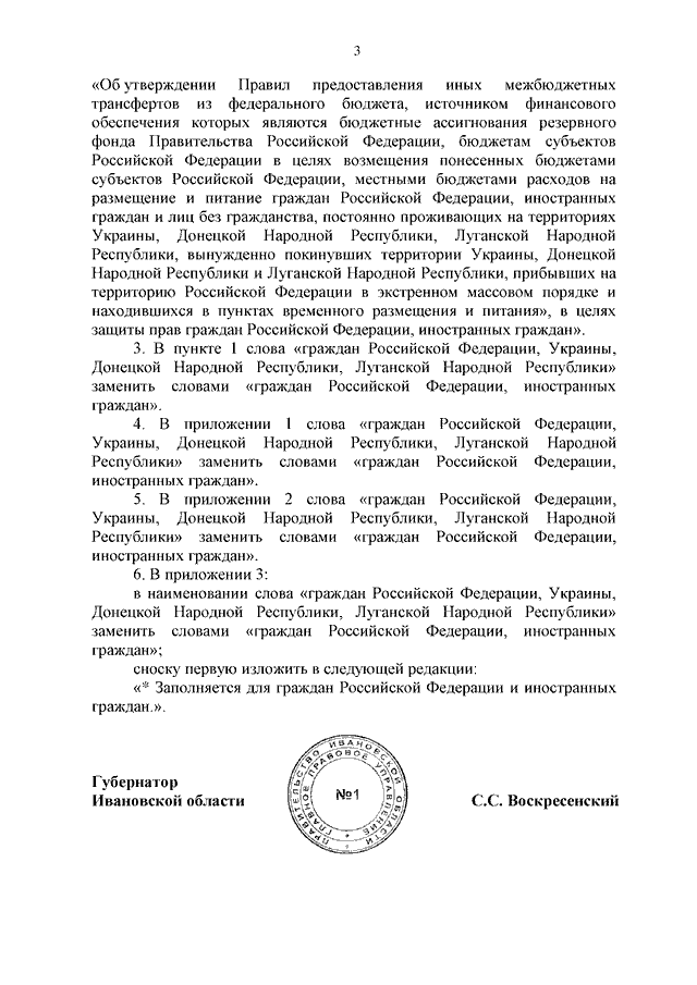 Постановление Правительства Ивановской области от 21.09.2022 N 512-п "О внесении изменений в постановление Правительства Ивановской области от 12.05.2022 N 235-п "Об обеспечении мероприятий по временному размещению и питанию граждан Российской Федерации, Украины, Донецкой Народной Республики, Луганской Народной Республики и лиц без гражданства, постоянно проживающих на территориях Украины, Донецкой Народной Республики, Луганской Народной Республики, вынужденно покинувших территории Украины, Донецкой Народной Республики и Луганской Народной Республики, прибывших на территорию Российской Федерации в экстренном массовом порядке и находящихся в пунктах временного размещения и питания на территории Ивановской области"