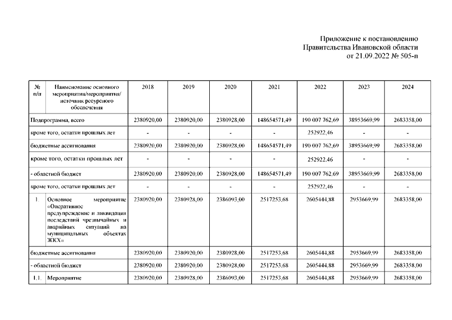 Постановление Правительства Ивановской области от 21.09.2022 N 505-п "О внесении изменений в постановление Правительства Ивановской области от 06.12.2017 N 458-п "Об утверждении государственной программы Ивановской области "Обеспечение услугами жилищно-коммунального хозяйства населения Ивановской области"