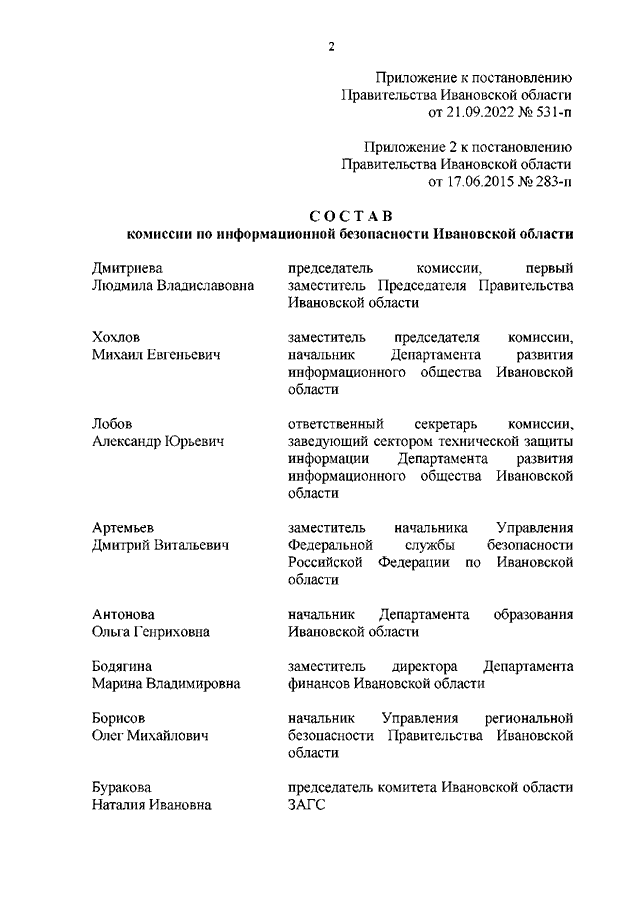 Постановление Правительства Ивановской области от 21.09.2022 N 531-п "О внесении изменения в постановление Правительства Ивановской области от 17.06.2015 N 283-п "О комиссии по информационной безопасности Ивановской области"