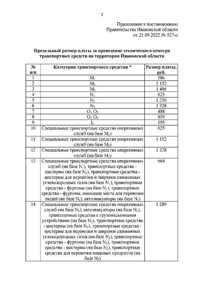 Постановление Правительства Ивановской области от 21.09.2022 N 527-п "Об установлении предельного размера платы за проведение технического осмотра транспортных средств на территории Ивановской области"