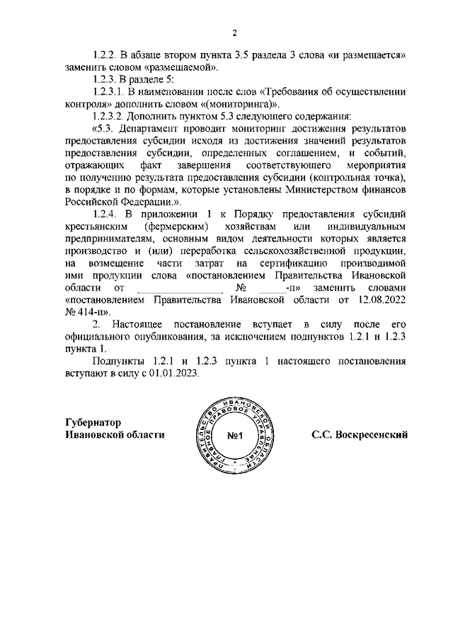 Постановление Правительства Ивановской области от 21.09.2022 N 517-п "О внесении изменений в постановление Правительства Ивановской области от 12.08.2022 N 414-п "Об утверждении Порядка предоставления субсидий крестьянским (фермерским) хозяйствам или индивидуальным предпринимателям, основным видом деятельности которых является производство и (или) переработка сельскохозяйственной продукции, на возмещение части затрат на сертификацию производимой ими продукции"